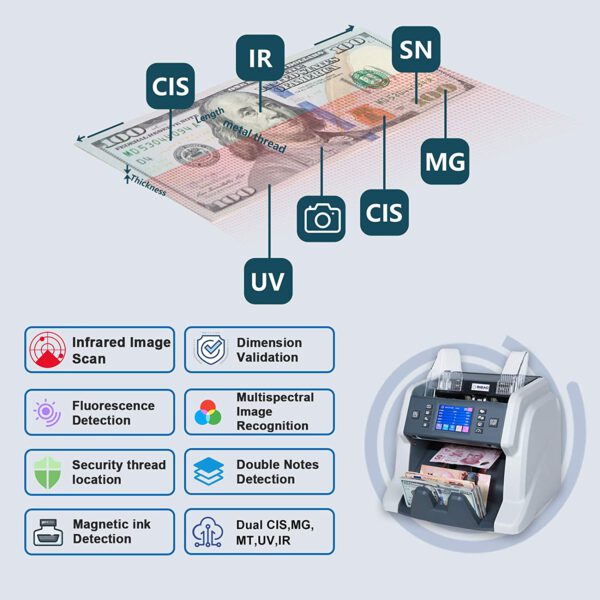 Τεχνολογία ανίχνευσης:Υπεριώδης (UV) – Μαγνητισμού (MG) – Μεταλλικού νήματος(MT) – Υπέρυθρης (IR), DOUBLE CIS και από τον σειριακό αριθμό.