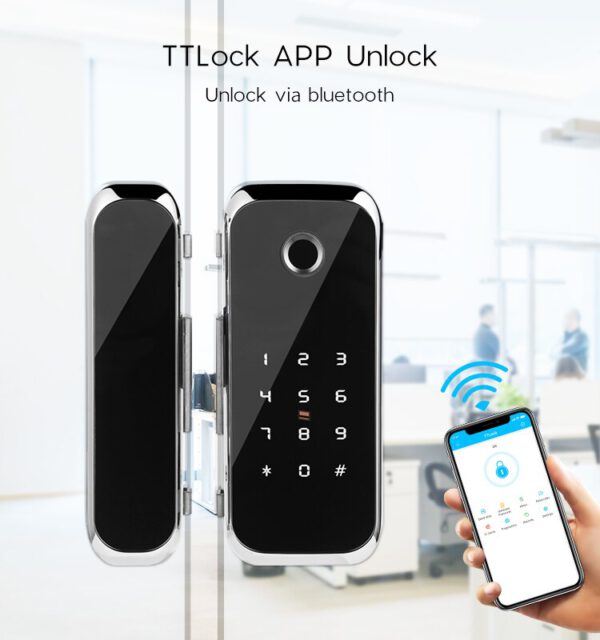 Έξυπνη Κλειδαριά για γυάλινη πόρτα λειτουργεί με κωδικό πρόσβασης, κάρτα, δακτυλικό αποτύπωμαμε απομακρυσμένη διαχείρισης με συσκευή Gateway